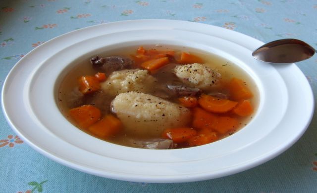 mzmVčeraj: goveja juha z gresovimi knedelčki in korenčkom (skoraj takiole je zgledala kot miškina),