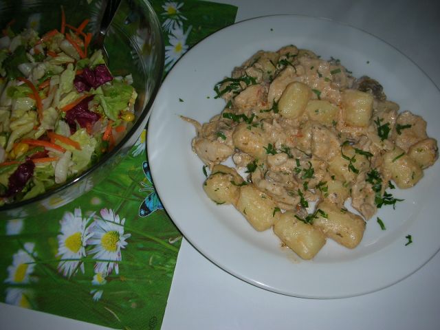 Danes meso po dunajsko, pražen krompir, zeljna solata, motovilec... ( hrana pred 9 leti, ko sem šla rodit)...![]()