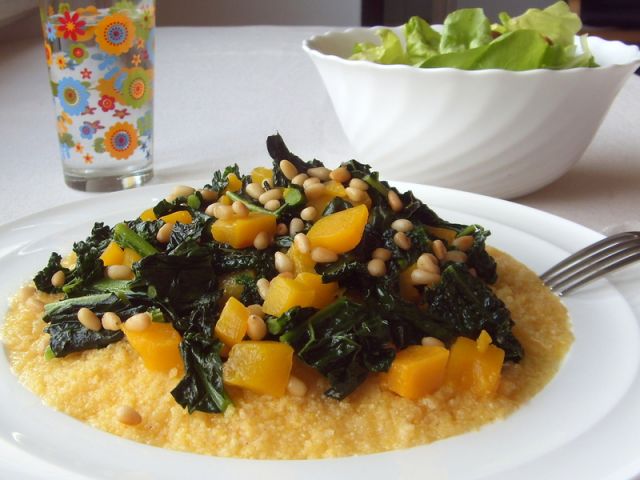 Polenta s toskanskim ohrovtom (meni je poznan pod imenom cavolo nero, vsaj upam, da je to to