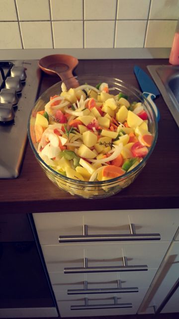 Filane paprike iz zaloge, pire krompir, zelena solata