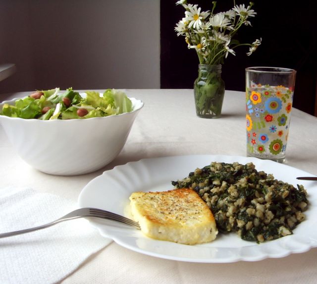 Danes: pečen sir, ješprenj s špinačo, endivija s fižolom, voda![]()