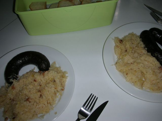 danes je bilo kislo zelje z ocvirki, krvavica in kruh