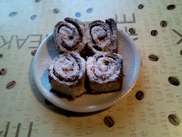 Danes pri nas gobova juha, dušene piščančje krače, široki rezanci, zelena solata. Sladkali smo se pa z buhtlji.