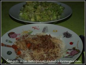 Danes: špageti, mesna omaka z grahom, solata, domači čokoladni sladoled