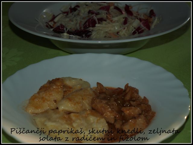 Včeraj: skutini cmoki, piščančji koščki v omaki, solata