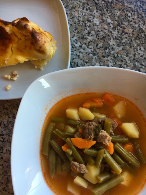 Pri nas je ostanek sarm vandral delno k njegovim in delno k mojim staršem, mi pa smo danes imeli enolončnico z govejim mesom in skutine palačinke