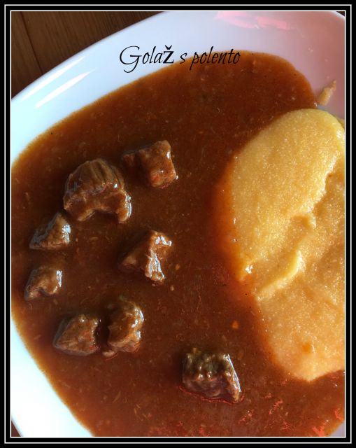 Pri nas pa danes preostanek goveje juhe z zdrobovimi cmoki, mož bo pleskavico na kajmaku, lepinjo in pečene paprike, midva s sinom piščančja nabodala, pomfri, šobsko solato