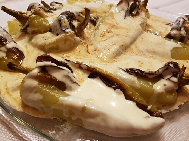 Pečena paprika, prelita s kislo smetano...