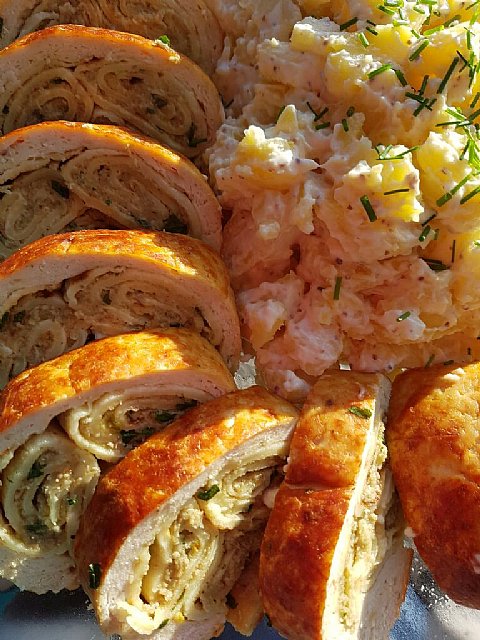 Piščančja rolada *Ruska ruleta*, krompirjeva solata...