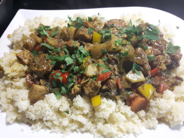 kuskus s piščancem in zelenjavo, seveda z arabskim navdihom (od začimb med drugim kumin, cimet, kardamom, korijander, klinčki, lovor, organo, menta, kurkuma):