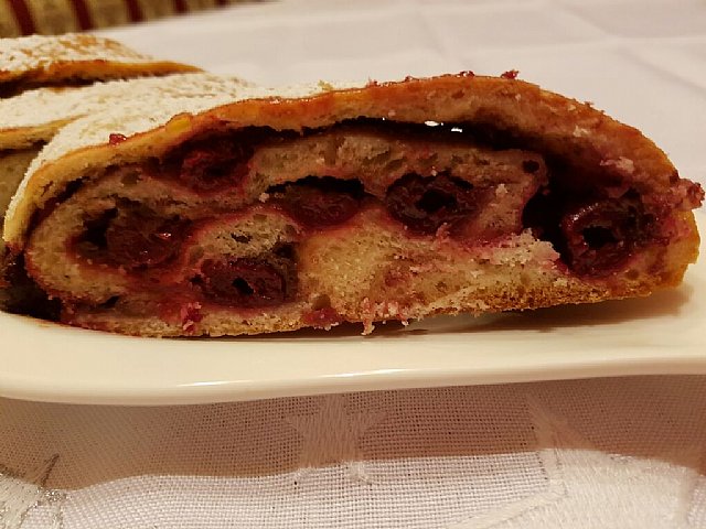 ... pa še nekaj sladkega mi je uspelo sčarat - višnjevo- nutelin zavitek...
