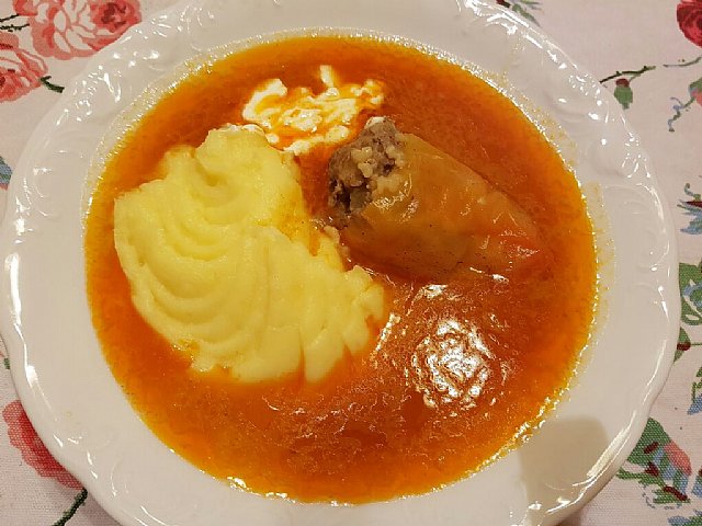 Filana paprika s kislo smetano in pire krompirjem....
