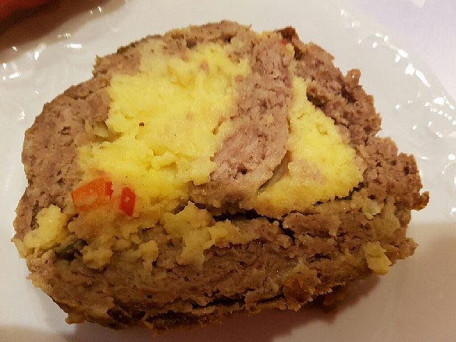 Rolada iz mleteka mesa, napolnjena pire krompirjem...