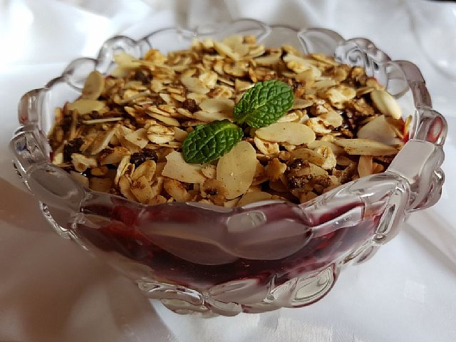 ... in za posladek jogurt, kaša iz gozdnih sadežev in granola v kozarcih...