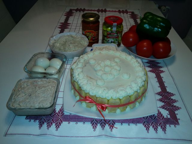 Jutri čaka kolegice pogostitev za rojstni dan, še en del, ker imam premalo prostora doma in ne morem imet v gosteh vseh naenkrat, tokrat tunin namaz, tzatziki, kuhana jajčka, piščančja prsa v ovoju, sir, pekoči dodatki (lutenica, feferoni), paradižnik, paprika, kruh, namaz iz česna in kisle smetane, olive, bobi palčke, rdeče in belo vino, tortica in kava