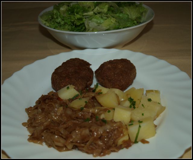 Dušeno zelje, kuhan krompir, polpeti, zelena solata... Slivovi cmoki ![]()