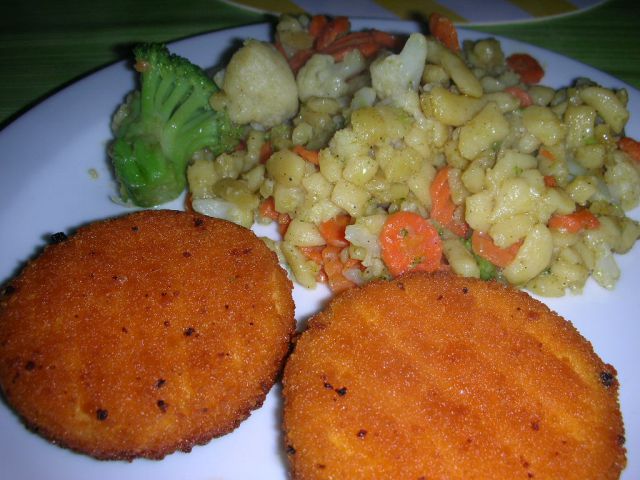 Včeraj sva jedla: bučno kremno juho, špecli z zelenjavo na maslu in pohan sir, ![]()