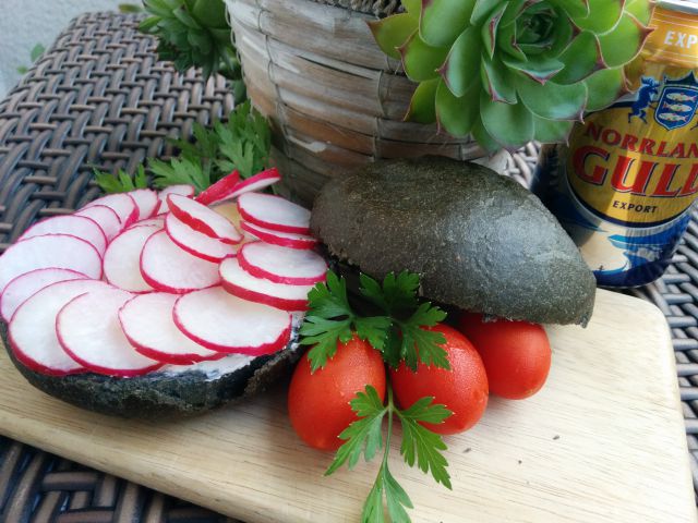 senviičččččč iz črne bombete, sirnega namaza in redkvic,