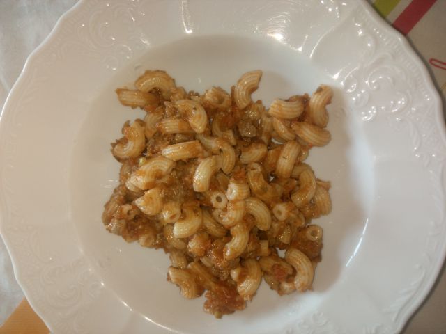 Mami se je danes potepala, oči kuhal... Makaroncke (omako sem ze jz vceraj) ;) zraven pa naribane domace kumare v solati