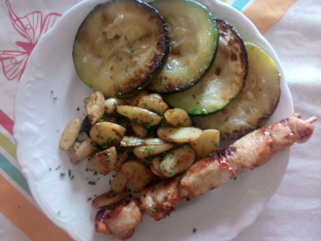 Danes sva imela zelenjavno juho, brancina, blitvo s krompirjem. Najboljši pri tem kosilu je bil pa sladoled, edini prave temperature. Jutri ne bom kuhala, bo hladno kosilo. In veliko vode. ![]()
