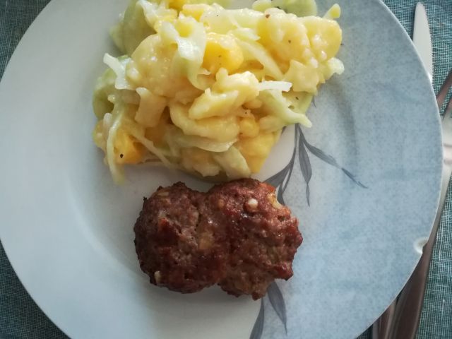danes mesni polpeti in krompirjeva solata s kumarami