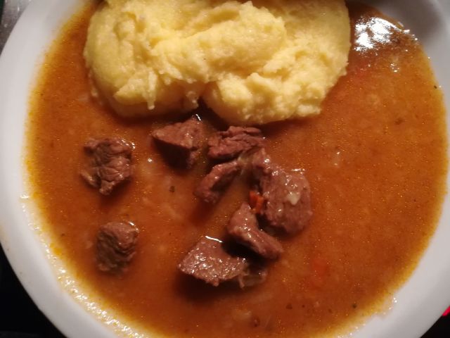 danes goveja juha z nudeljci in goveji golaž (bolj golaževa juha