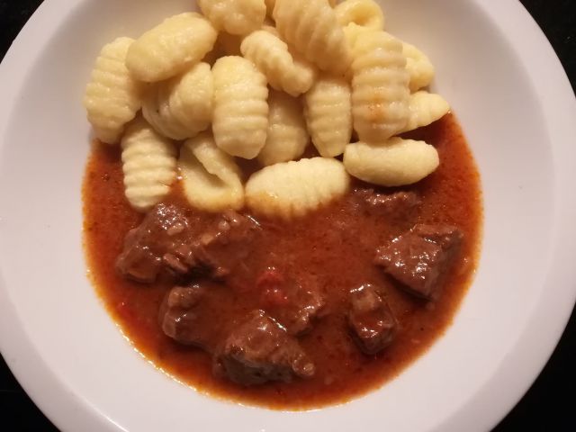 danes je bil golaž iz zaloge, njoki in zelena solata z radičem