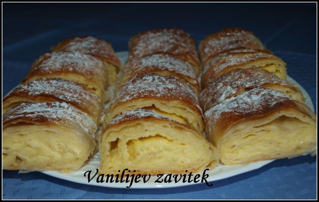 Kuhani skutni štruklji, gobova omaka, piščančja prsa s porom, mešana solata - zelena, radič, zeljnata; vanilijev zavitek
