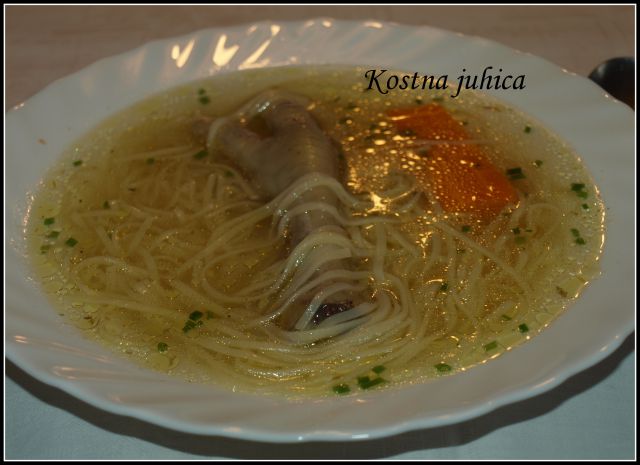 Včeraj goveja juha z zdrobovimi cmoki, pečen krompir, pečeno meso piščanca in teletine, mešana solata