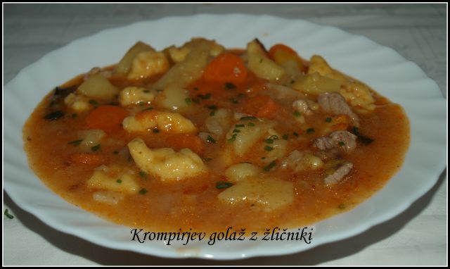 goveja juha z jetrnimi knedlčki, slivovi cmoki, malinina omakica, zame mešana solata