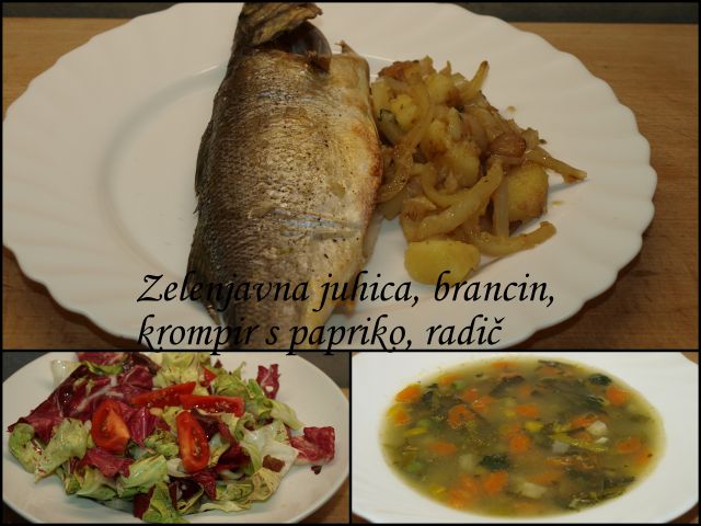 Včeraj mesna rižota z zelenjavo, mešana solata.