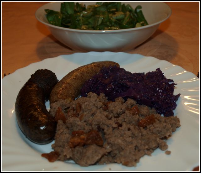 Midva sva jedla sladko zelje v kompaniji s svinjskim stegnom in krompirjem v kosih, zabeljenem z ocvirkovo mastjo. Hedonist, čeprav imam korenine v deželi cvička, ga že več kot desetletje nisem pokusila, pa tudi drugih sort ne, pernatih živali ne jem. Tako sem slaba družba možu, ki tako hrano in pijačo obožuje. Se pa ne pritožuje. Sem pa vesela, da ta običaj živi in želim vsem dober tek in na zdravje! ![]()