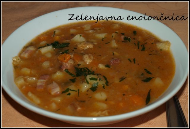 Ješprenček s prekajeno klobaso..svež kruhec..![]()