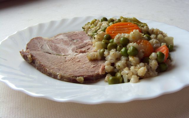 Danes smo imeli mrzlo sveto pečenko od včeraj, toplo jed iz ješprenja in odmrznjene zelenjave ( v tej burji je do zelenjavne trgovine premalo kandelabrov