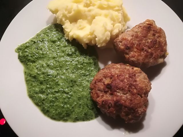 danes pire krompir, špinača in mesni polpeti