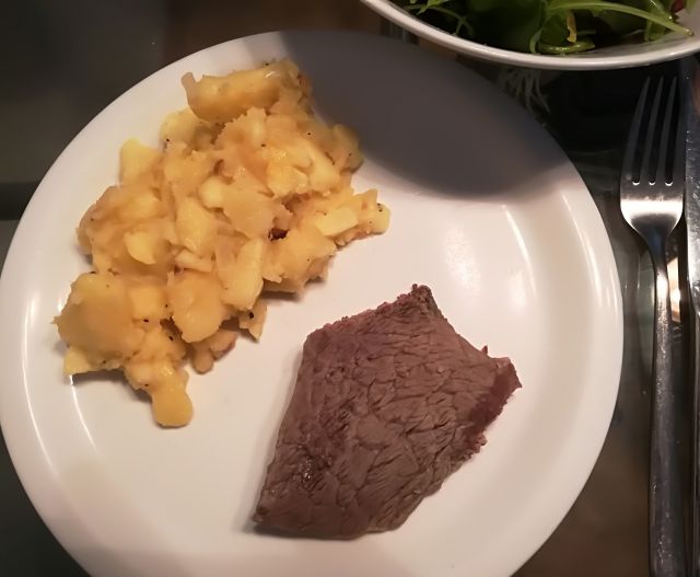Danes goveja juha z rezanci, govedina iz juhe za punci, naravno pečeni zrezki, pečen krompir, mešana solata z vrta