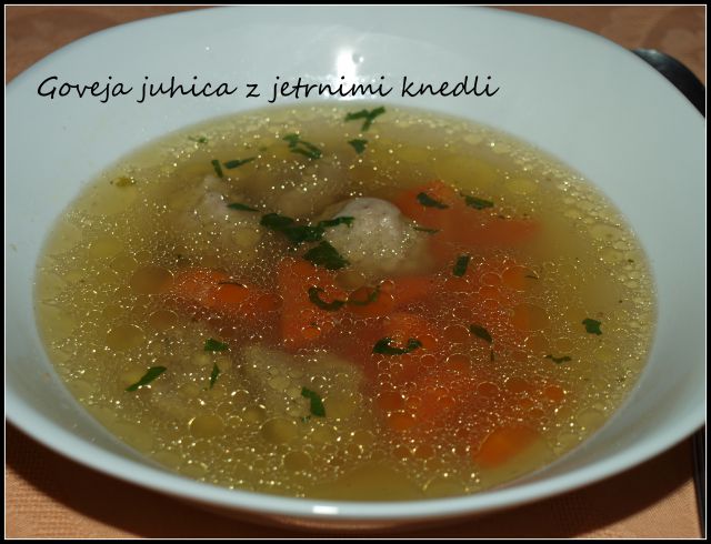 Goveja juhica z jetrnimi knedli; pečene krvavice, po pariško panirani zrezki, pomfri, omaka - majoneza, kisla smetana, naribane kisle kumarice... (Solato smo pozabili ![]()
