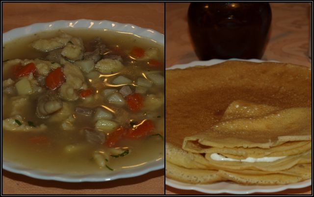 Reciklaža in dodajanje v govejo juhico; palačinke