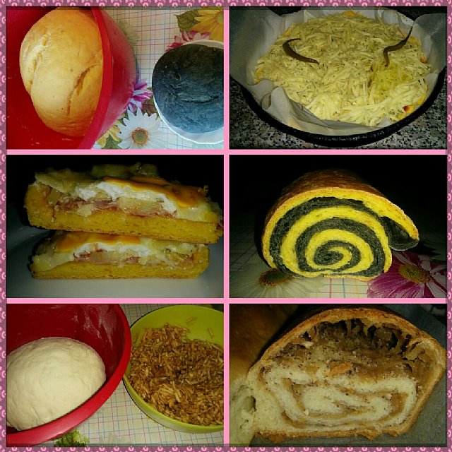 ter pisan kruh iz istega testa ter testa z dodanim mletim ogljem. Popoldan sem spekla še jabolčno potico, no pečena z ogromno luknjo, a zelo okusna