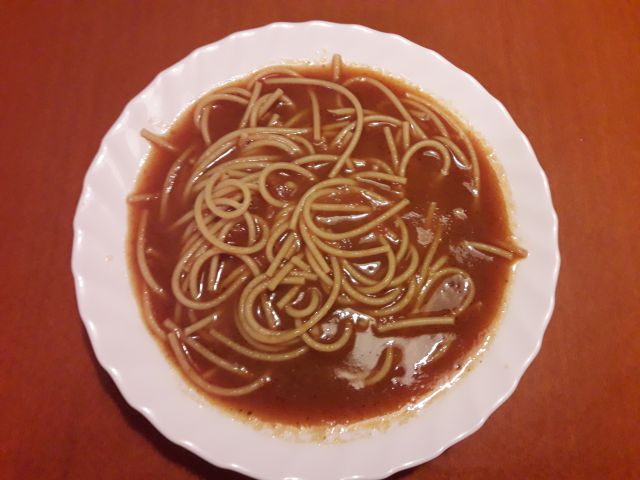 Včeraj: Zelenjavna kremna juha, carbonara s šunko, jajci in špageti, cvetača v solati. kava in zvež pomarančni sok.