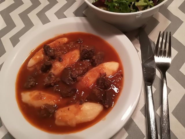 Moja dva meso po dunajsko, pražen krompir, mešano solato.