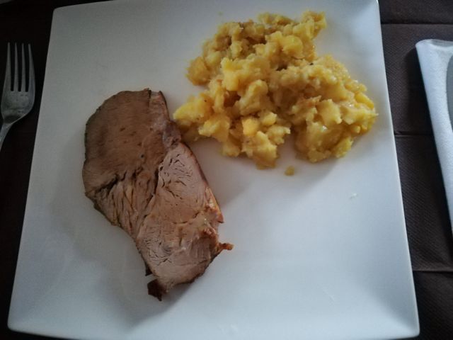 Ta vikend praznujemo, danes z enim delom družine, goveja juha z nudeljci, svinjska pečenka, tenstan krompir, mešana solata, za vegetarijanko sem spekla zavitek iz listnatega testa z ajdovo kašo, gobicami, porom in zeljem