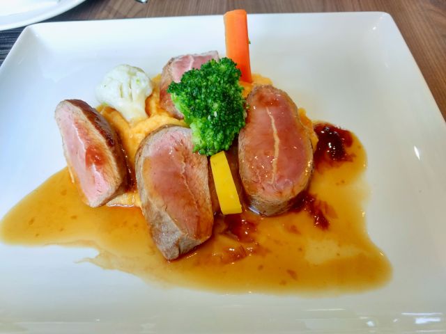 Danes sva si spet malo privoščila (treba še lanske darilne bone porabit ;)): za predjed račja paštetka z majonezo rdeče pese, kremna zeliščna juha z mlečno peno in roza rostbif z bučnim pirejem, sladica pa ni šla več :)