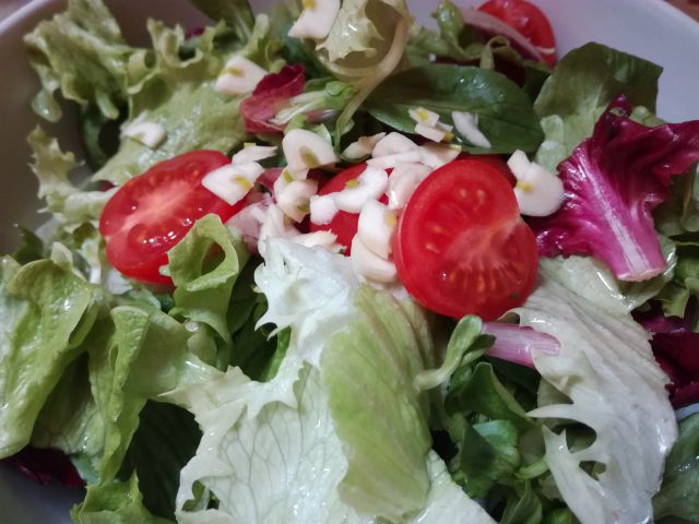 Nisi niti opazila, da je bilo čist mal zelene solate, ostalo je bila zeljnata s krompirjem in fižolom. ![]()