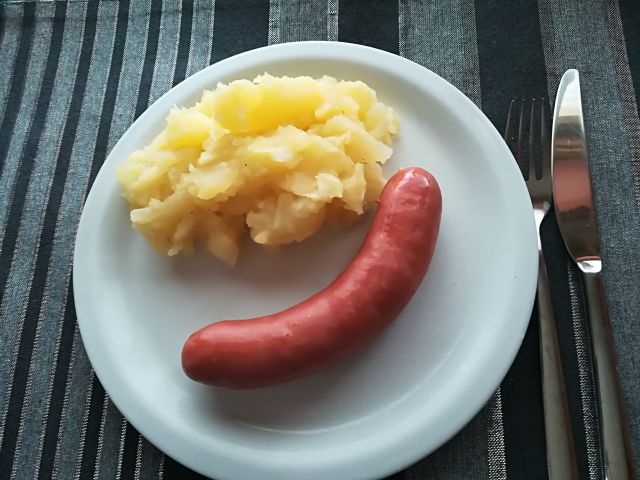 danes vsak pol klobase, za moža krompirjeva solata iz nekega čudnega krompirja