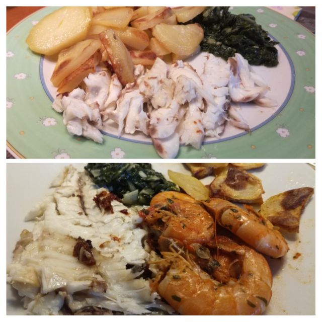 Danes sem po dolgemu času gostila hčerko in njenega fanta. Pripravila sem nam pečene kornatske orade, sveže tigraste kozice ala buzara, pečen krompir, blitvo, berivko z redkvicami. Od slik je bore malo...