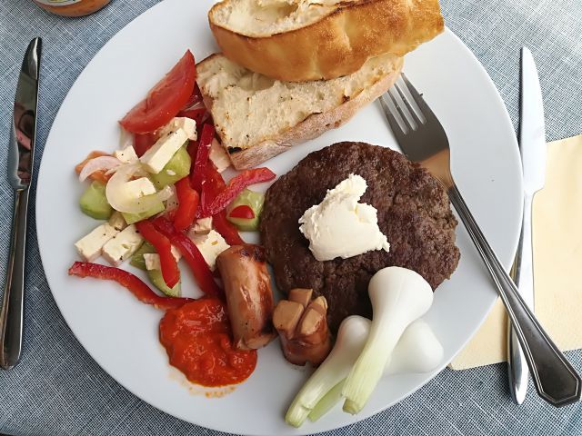 Danes: čevapčiči, čebula, paradiznik, ajvar, paprika