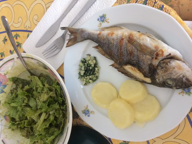 Danes goveja juha z rezanci, moja dva goveji golaž in polžki, midve s hčerko file orade, pečen krompir, zeljna solata z domačo zeleno solato