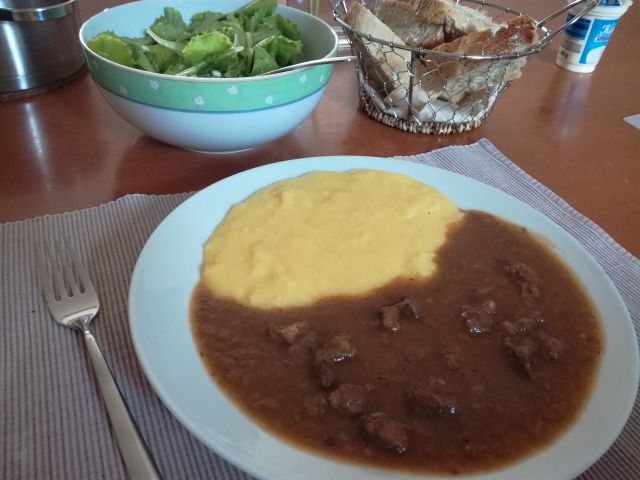 Danes golaž, polenta, domač kruh, berivka.