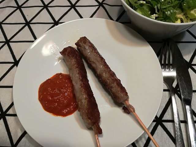 danes na hitro, čevapčiči, solata iz rukole, zelja in kumare, kruh